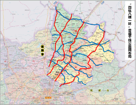 图2 铁岭市“四纵八横一环”市域干线公路网布局示意图