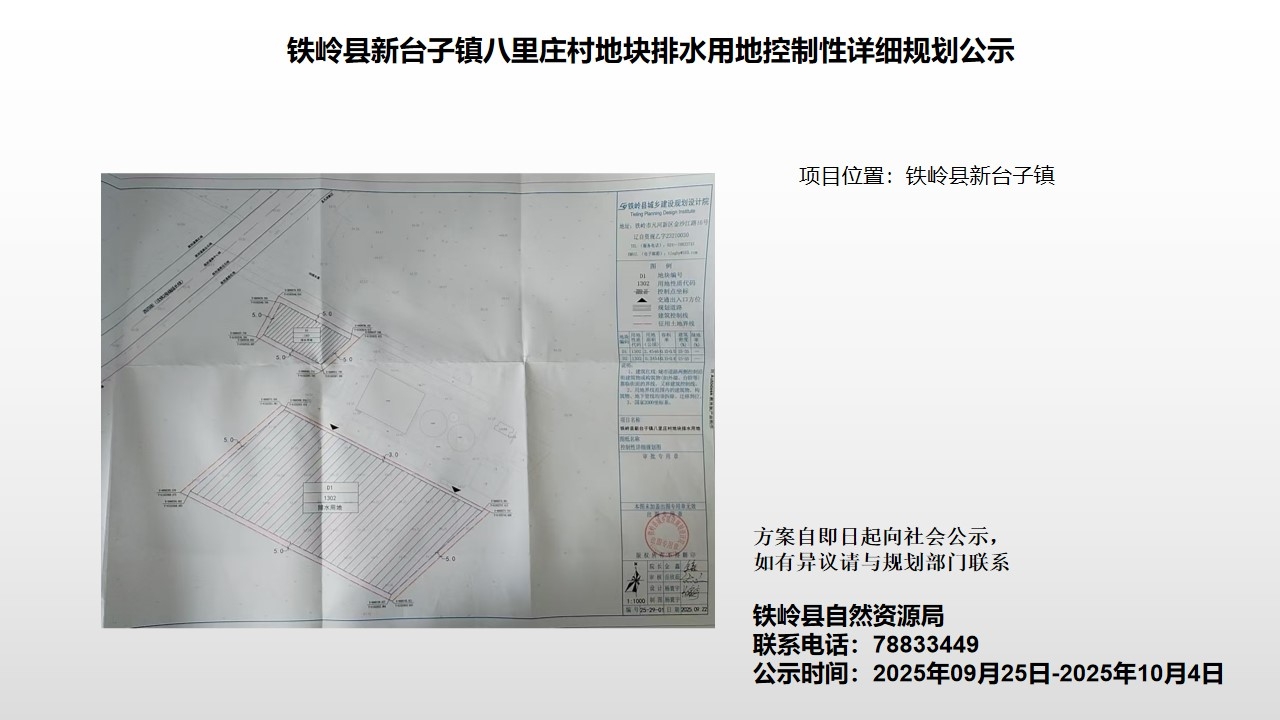 铁岭县新台子镇八里庄村地块排水用地控制性详细规划公示