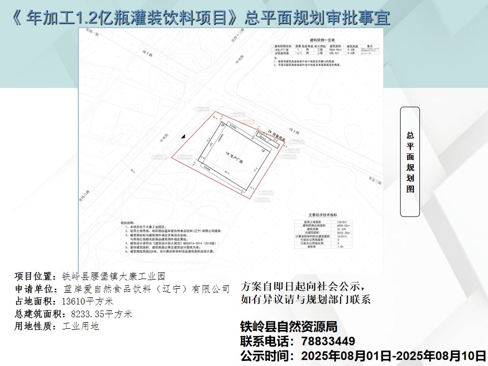 《 年加工1.2亿瓶灌装饮料项目》总平面规划审批事宜公示