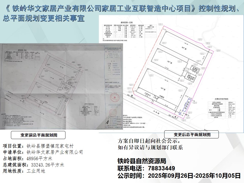 《 铁岭华文家居产业有限公司家居工业互联智造中心项目》控制性规划、总平面规划变更相关事宜