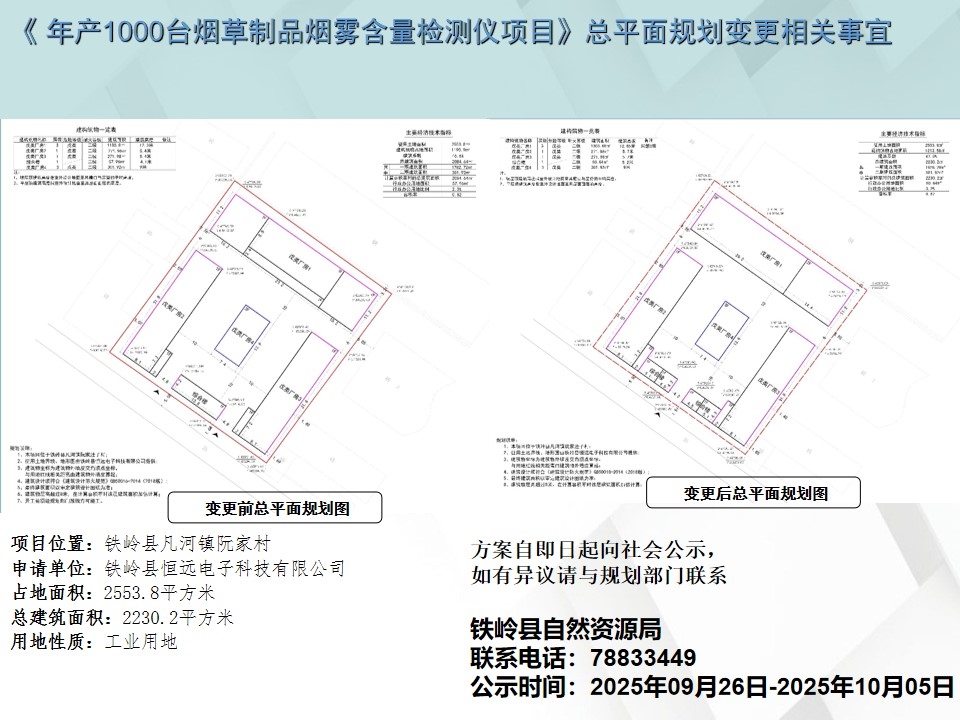 《 年产1000台烟草制品烟雾含量检测仪项目》总平面规划变更相关事宜
